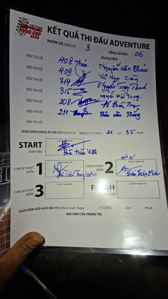 Tới 4h sáng ngày 02/11/2025, toàn bộ các nhóm thi đấu đều đã hoàn thành xuất sắc cung đường Adventure. Các đội thi đã về đích an toàn, đáp ứng đầy đủ và hợp lệ quy định của bài thi đề ra.