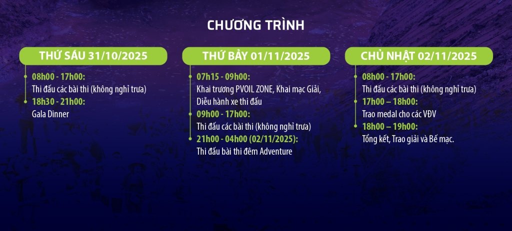 Tới 18h00 ngày 02/11/2025, ngày thi đấu thứ 3 cũng là ngày thi đấu cuối cùng của Giải PVOIL VOC 2025, tất cả các bài thi của cả 4 phân hạng Cơ bản, Chuyên nghiệp, SUV Nâng cao, Bán tải Nâng cao đều đã hoàn thành.